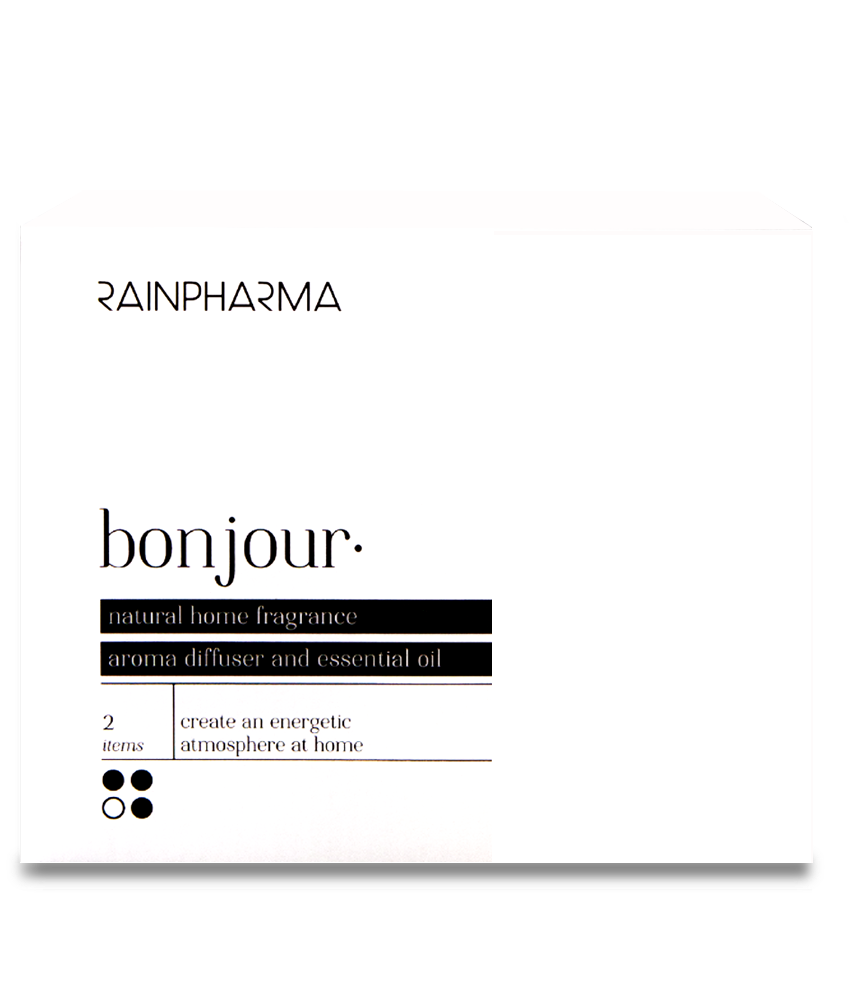 In deze box vind je een Aroma Diffuser en een essentiële olie Bonjour, om jouw huis te laten baden in de heerlijke, natuurlijke geur