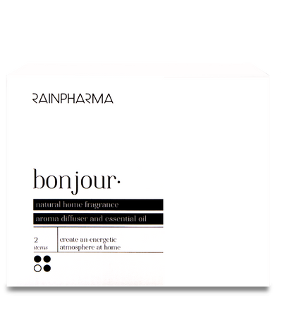 Bonjour is een blend van pure essentiële oliën met aroma’s van citrus en kruiden, voor een energieke start van de dag.