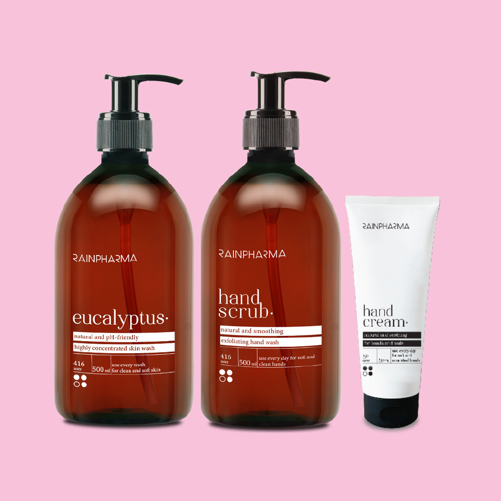 Diese drei Produkte verleihen Ihnen samtweiche Hände. Angenehm anzufassen und zu berühren. Waschen Sie Ihre Hände mit dem Waschgel, entfernen Sie sanft abgestorbene Hautschüppchen mit dem Handpeeling und pflegen Sie sie anschließend mit der Handcreme.