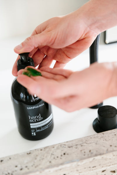 Befeuchten Sie Ihre Hände und peelen Sie sie gründlich mit einem Pumpstoß Handpeeling. Abspülen und anschließend mit Hautwaschgel Eukalyptus waschen. Trocknen Sie Ihre Hände ab und tragen Sie eine kleine Menge Handcreme auf, um sie zu pflegen.