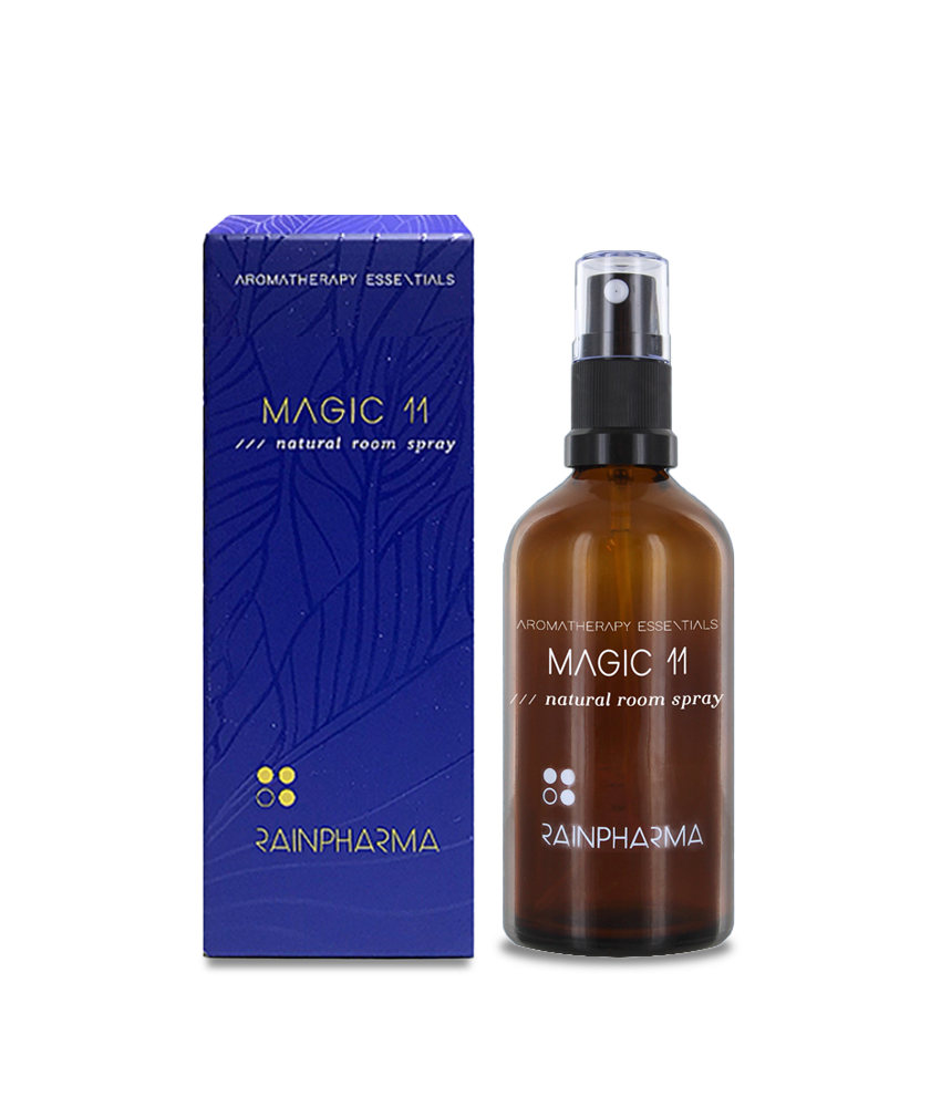 Powerful home perfume blend. Magic 11 is a room spray based on no fewer than 11 essential oils: cinnamon, ginger, orange, mandarin, black pepper, frankincense, cedarwood, thyme, eucalyptus, sage & pine.
