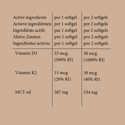 La vitamine D soutient l'immunité naturelle et contribue à un taux normal de calcium dans le sang . De plus, la vitamine D contribue au maintien d'os solides .